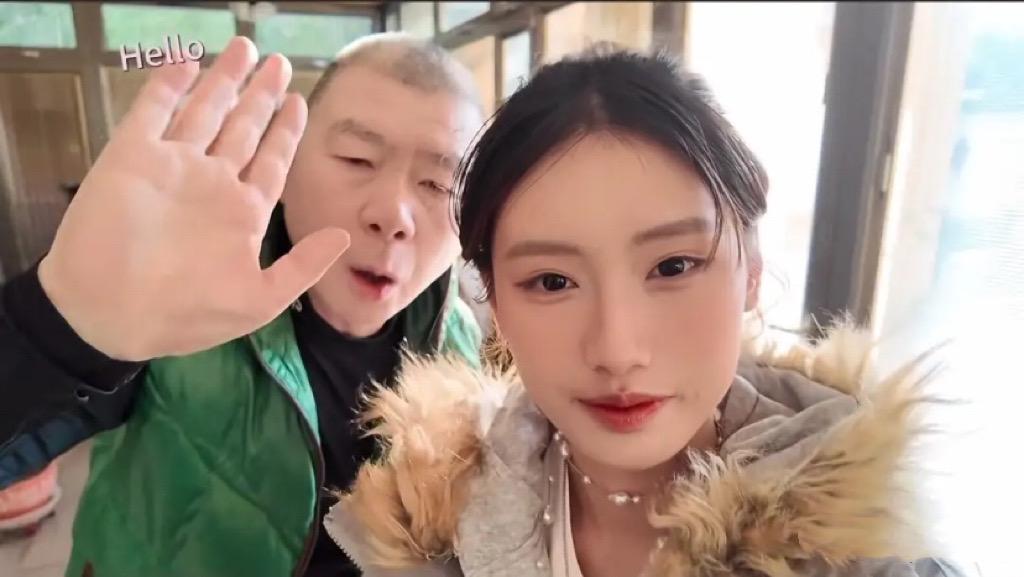 录视频的过程中,冯小刚刚好起床了。被女儿拉过来对着镜头打招呼,冯小刚穿一件黑色毛衣、绿色马甲,头发都花白了,私下里是个很慈祥的老父亲。